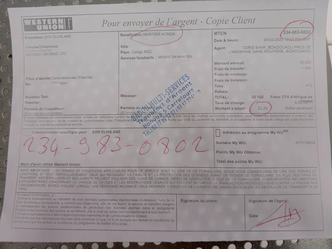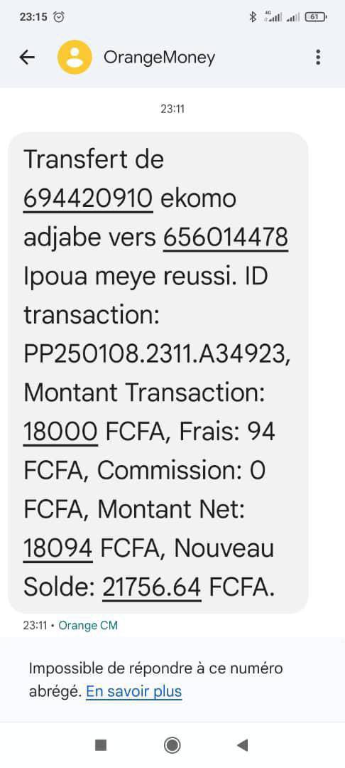✅ La somme requise de 30€ ou 17500 FCFA pour l’achat de votre CLÉ BUSINESS