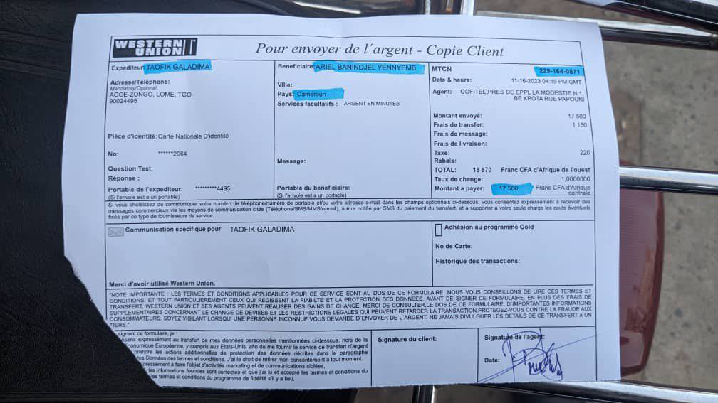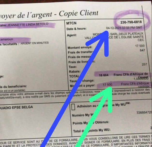 N.B: 30€ = 35$ = 17500 XAF